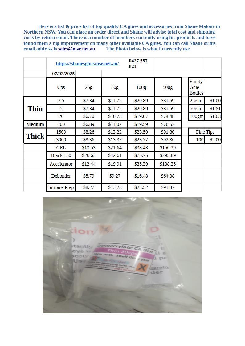 Club Members, if you have any Aeromodelling items that you would like posted on the website. Just send me some pictures and details and I will list them for you. My Contact 0408969360 or email amcentyre49@gmail.com Cheers Andrew.